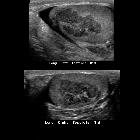 congenital adrenal hyperplasia. Sagittal US of the bilateral testicles shows cerebriform appearing adrenal tissue within each testicle.The diagnosis was congenital adrenal hyperplasia with bilateral testicular adrenal rests.