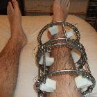 Ein Ilizarov-Ringfixateur ist ein externes Fixationssystem, das aus kreisförmigen Ringen besteht, die durch Drähte und Gewindestangen miteinander verbunden sind. Es wird in der orthopädischen Chirurgie eingesetzt.