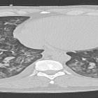 cardiomyopathy secondary to chronic cocaine abuse: a case report. Computed tomography of the chest without contrast - bilateral peribronchovascular airspace consolidation, ground-glass opacity with interlobular septal thickening.