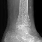 Osteosynthese am Außenknöchel mit Illuminoss. Polymerimplantat für minimalinvasive Frakturstabilisierung. Vorteil: Minimalinvasiv einzubringen z.B. bei Weichteilinfekt. Monomer wird lichtinduziert polymerisiert.