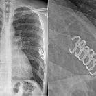 instabile Brustwand Rippenklammern. Neben den versorgten Rippenfrakturen beidseits weitere weniger verschobene Frakturen.