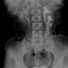 ureter - Congenital vascular cause of obstructive hydronephrosis. 25-year-old male patient with right circumcaval ureter showing medial deviation of the right ureter at L3 level with hydroureteronephrosis with a ‘reverse J’ configuration.