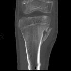 - osteolytic process of the distal tibia in childhood