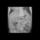 feeding tube placementAXR shows a feeding tube coursing along the greater curvature of the stomach and then passing through the pylorus and duodenum with the tip in the proximal jejunum. A nasogastric tube is also present with its tip within the body of the stomach.The diagnosis was appropriate position of the feeding tube tip.