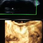 ichthyosis - Prenatal diagnosis with two- and three-dimensional ultrasound at 30 weeks. Three-dimensional surface rendered image of forehead shows a crack in skin of forehead and bilateral orbital swelling.