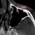 the infraorbital canal into the maxillary sinus: A cross-sectional study in Cairo, Egypt: Fig. 3. Axial cone-beam computed tomographic image shows the horizontal suspension of the infraorbital canal with a displayed septal length of 3.6 mm, denoting a class II canal (septal length >3 and ≤7 mm).