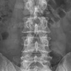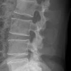 einer LWS mit Z. n. Laminektomie bei LWK 1. Der Dornfortsatz fehlt.