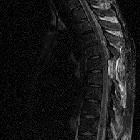 of acute paraplegia: granulocytic sarcoma. Sagittal spinal cord MRI T2: complete regression of compression process (the epidural mass was completely resected) with stigmata of laminectomy D6.