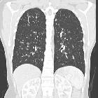 As is usually the case, CT and especially HRCT is superior to plain chest radiography in identifying both the reticulonodular opacities and cysts . Distribution is the key in differentiating pulmonary Langerhans cell histiocytosis from other cystic lung diseases with a predilection for the mid and upper zones and regional sparing of the costophrenic recesses, anterior right middle lobe and lingula left upper lobe .