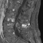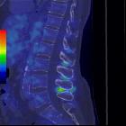 May demonstrate FDG-avidity when associated with an inflammatory response such as bursitis . The best diagnostic clue for avoiding misinterpretation may be scrutinising sagittal multiplanar reconstructions (MPR) and involvement being limited to spinous processes, which is rare in malignancy .