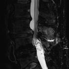 May demonstrate interspinous bursal fluid and posterocentral epidural cyst(s). MRI can be very helpful in determining whether there is resulting posterior compression of the thecal sac.
