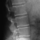 Wirbelkörper thorakolumbaler Übergang bei Achondroplasie. Die Vorderkante ist ausgerundet, die Hinterkante zeigt ein Scalopping.
