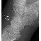 On plain film, dorsal avulsion injuries are best detected on a lateral projection, where typically an avulsed flake of bone is identified lying posteriorly to the triquetral bone (see pooping duck sign). CT or MR may be more sensitive than conventional radiographs for detection of avulsion injuries.